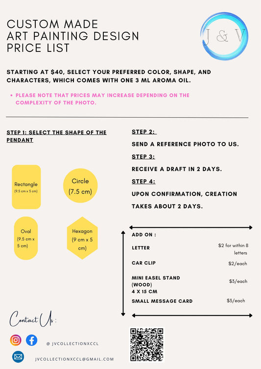 Experience the perfect blend of beauty and relaxation with our handcrafted diffuser pendants. Designed to hold your favorite essential oils, these unique pendants allow you to enjoy a refreshing aroma throughout the day—whether at home, work, or on the go. Each piece is carefully made with love, making it a stylish and functional accessory or a thoughtful gift.